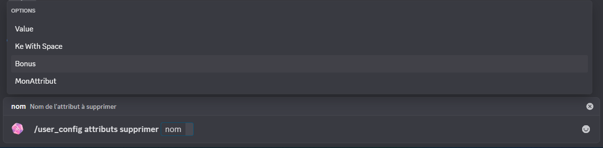 /user_config attributs supprimer [*nom]