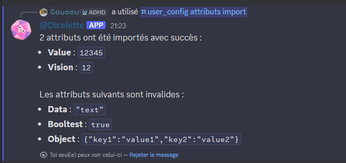 Lors de l’import, les attributs sont validés et seuls ceux conformes seront ajoutés.