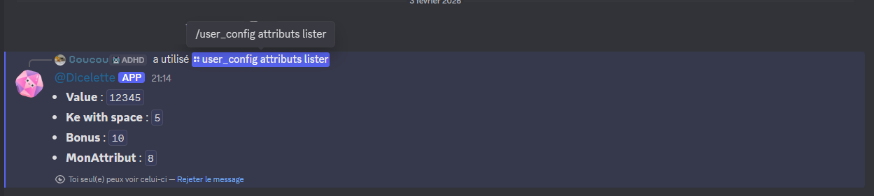 /user_config attributs lister