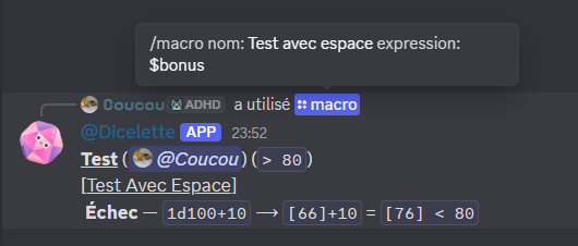 /dbroll,/macro) ainsi que leur équivalent dans/mj. - Dans les commandes